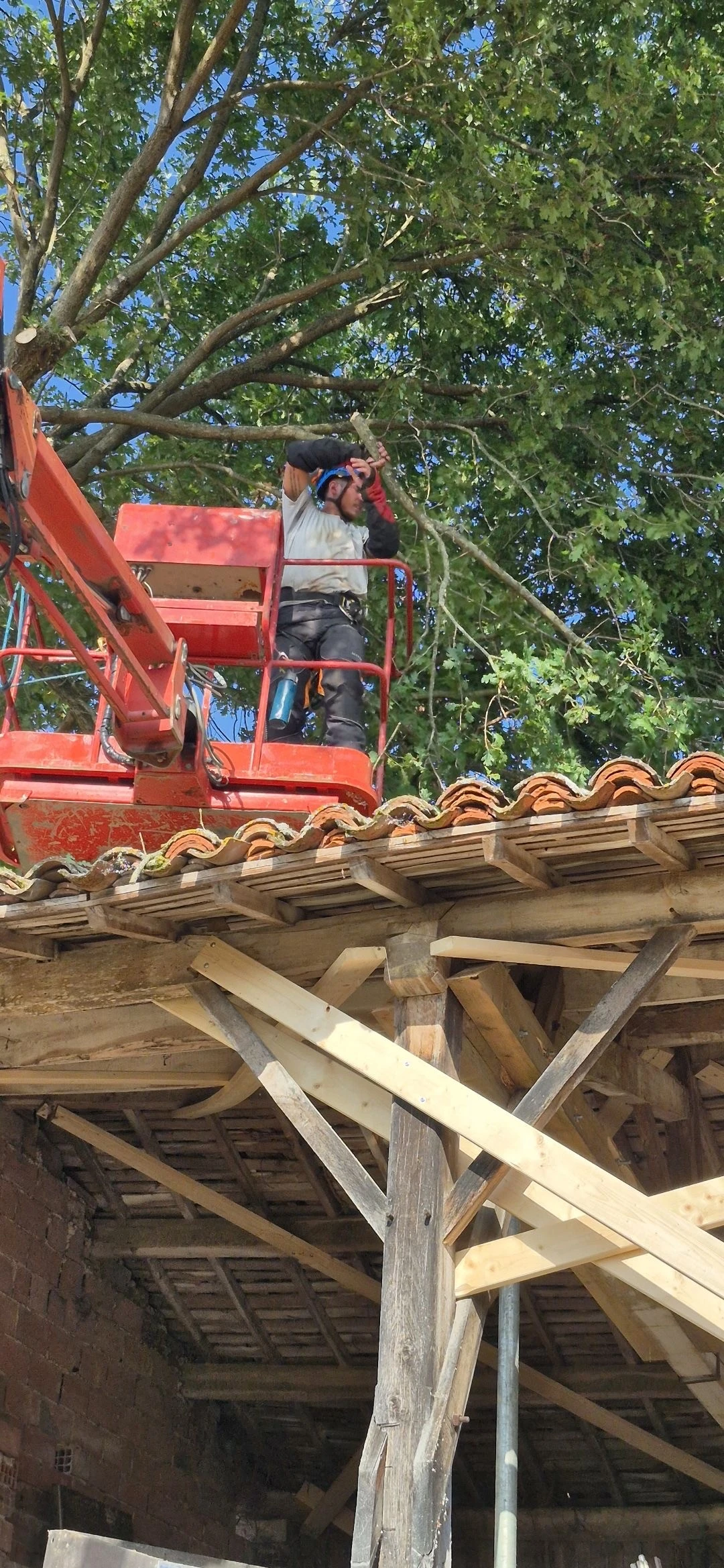 Ducoup L'équipe Mowglie élagage est intervenue pour l'abattage complet de l'arbre avec location d'une nacelle articulée de 16 mètres et d'un manuscopique de 14 mètres. Avec l'expérience et le savoir faire de notre équipe on n'a pu démonté l'arbre sans casse avec des techniques d'abattage et de rétention.