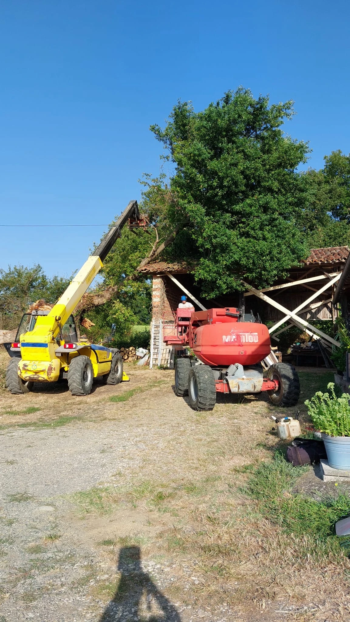 - 2ème journée d'intervention après la réception des engins sur le chantier, à 2 personnes, démontage en toute sécurité du 3ème mas posé sur la grange,